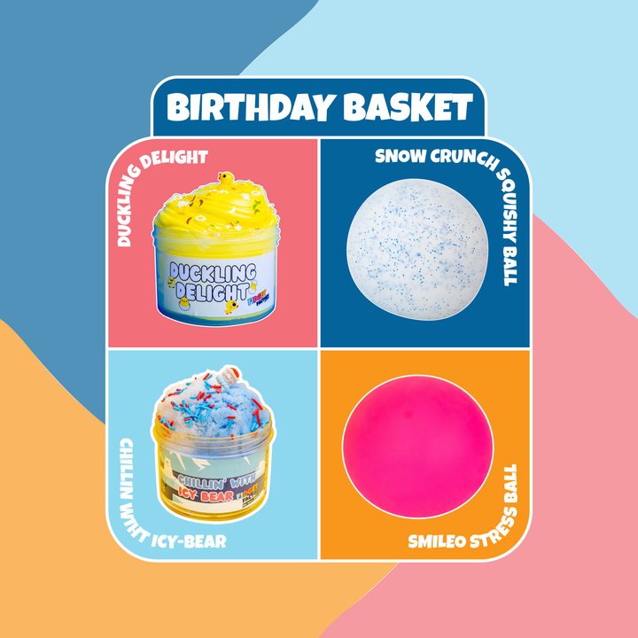 Celebrate every day like it’s your birthday with the Birthday Basket, a colorful combo of slimes and fidget toys that bring joy, calm, and creativity to any moment! Packed with satisfying...